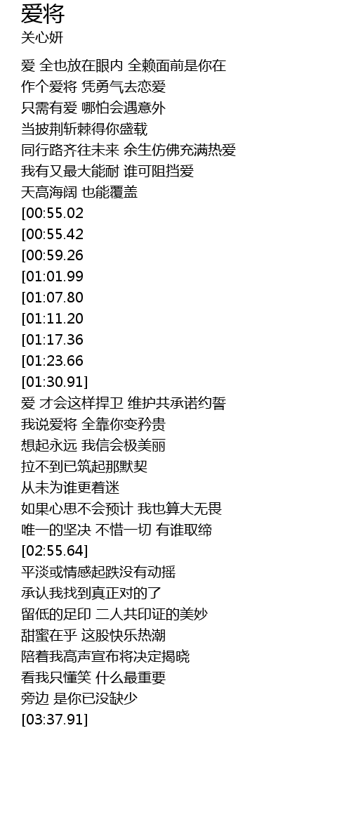 | [00:23.20] | 作个爱将 凭勇气去恋爱 |