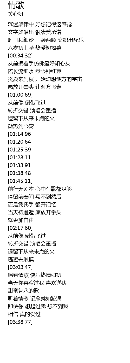 | [00:34.92] | 从前携着手仿佛最好知心友 |