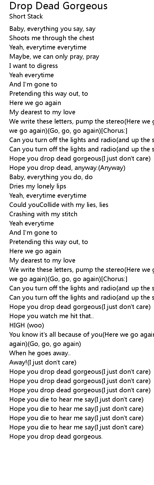Hope you drop dead gorgeous(I just don't care) |