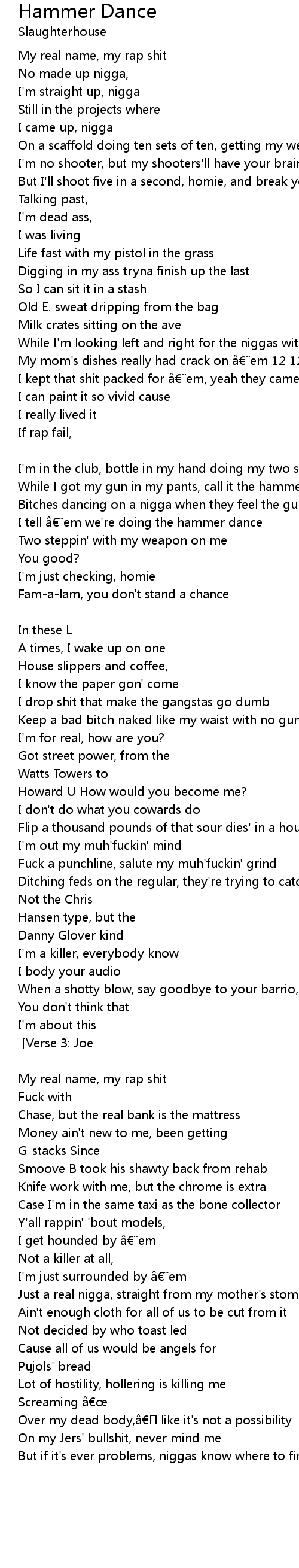 | While I got my gun in my pants, call it the hammer dance | |