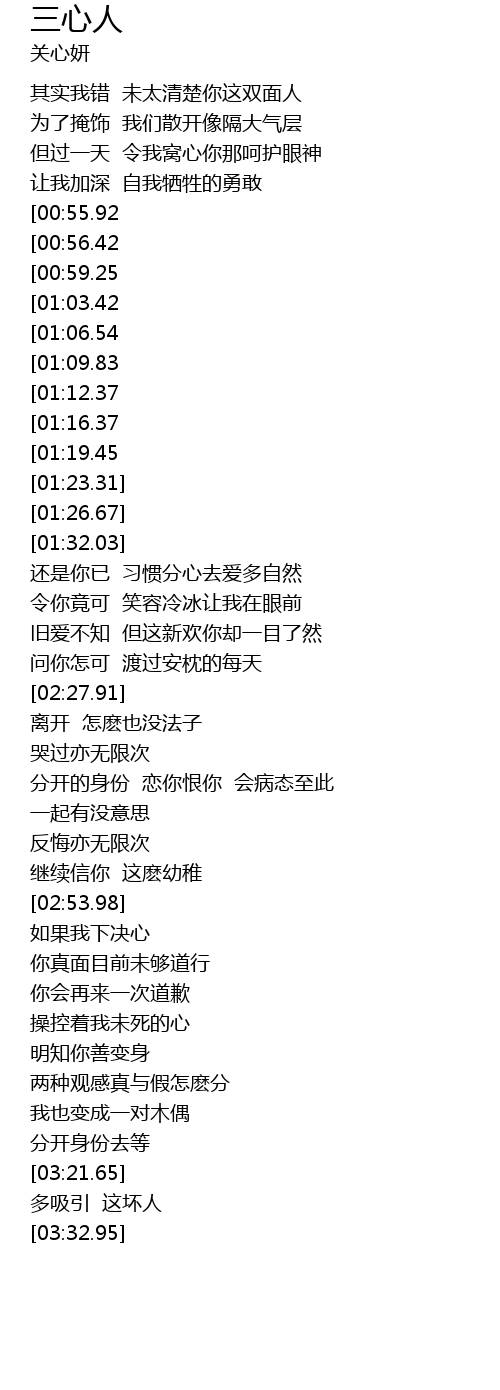 | [00:31.52] | qi shi wo cuo wei tai qing chu ni zhe shuang mian ren |