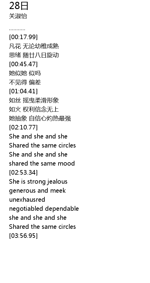 | [00:35.20] | 思绪 随廿八日旋动 |