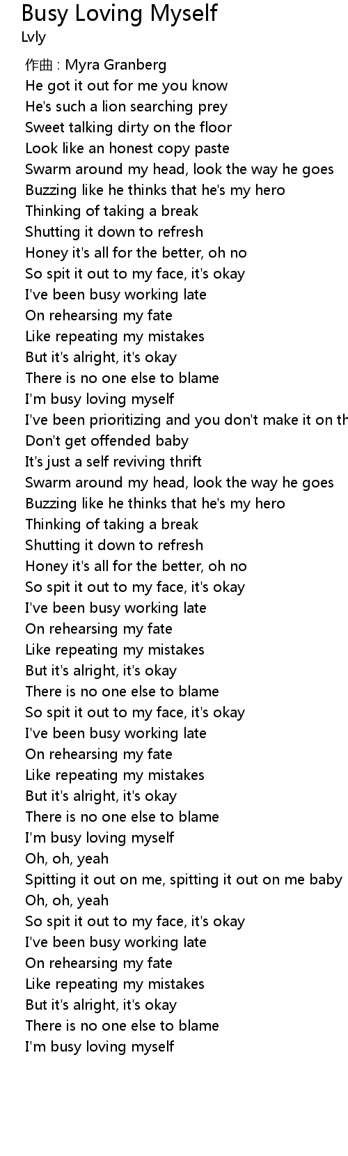 | [02:55.817] | I' m busy loving myself |