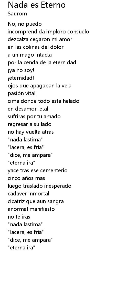 | Song | Nada es Eterno |