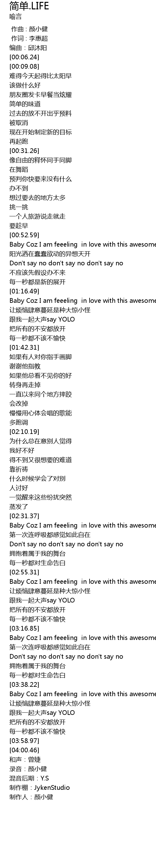| [03:06.48] | gēn wǒ yì qǐ dà shēng say YOLO |