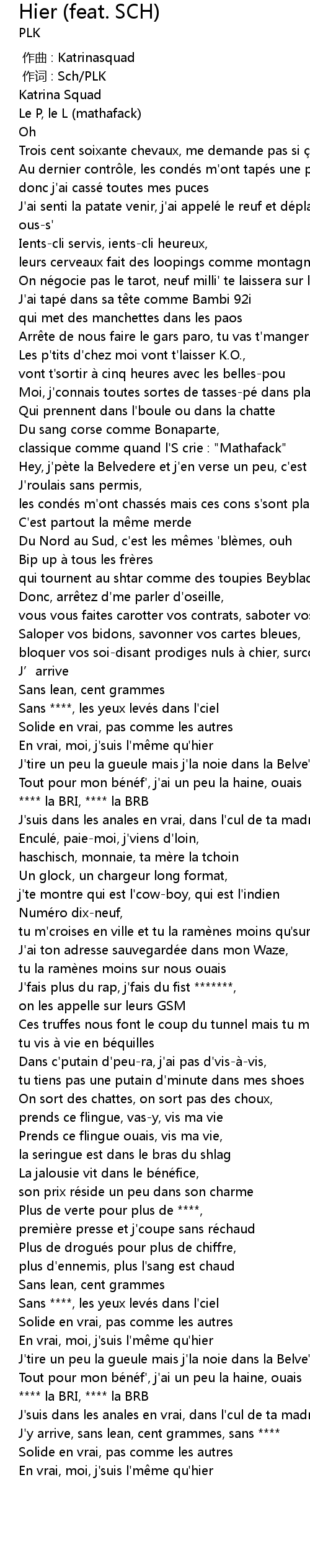 | [01:52.16] | haschisch, monnaie, ta mè re la tchoin |