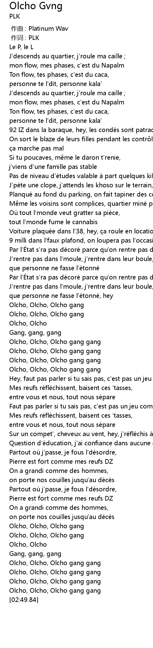 | [02:44.99] | Olcho, Olcho, Olcho gang gang |