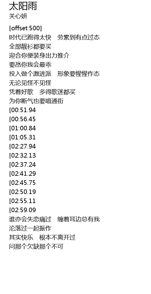 | [02:23.37][01:05.31] | 你心想我怎么唱都可以永未迟 |