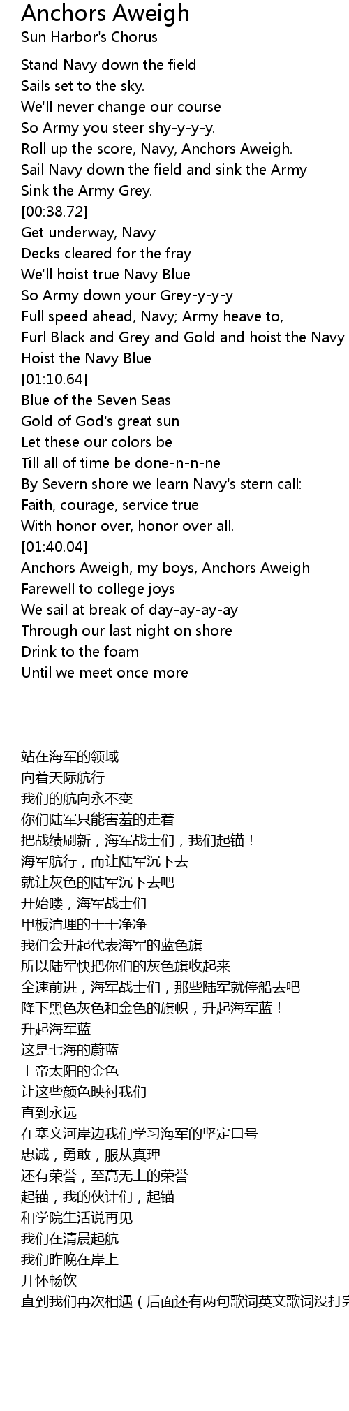 Anchors Aweigh, my boys, Anchors Aweigh |