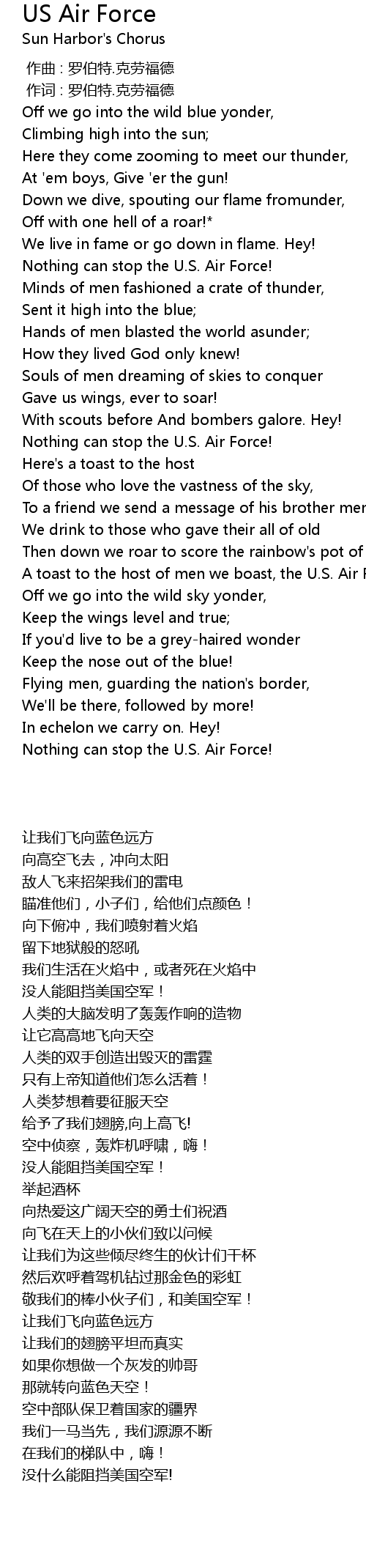 | [00:33.06] | Nothing can stop the U.S. Air Force! |