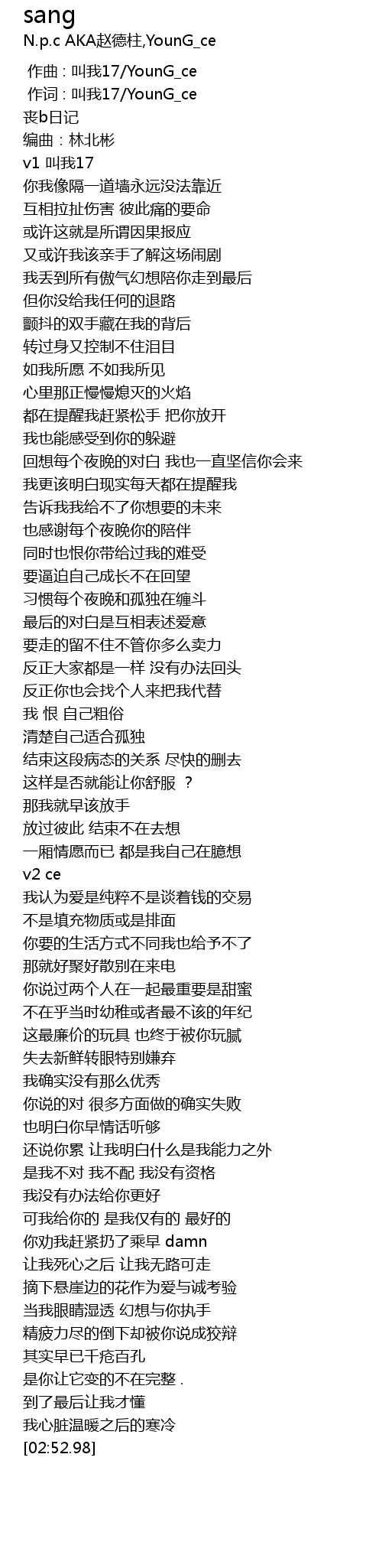 | [00:01.000] | 作词 : 叫我17/YounG_ce |