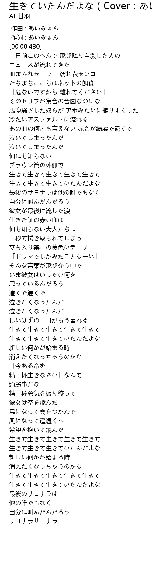 | [01:50.300] | 生きて生きて生きていたんだよな |