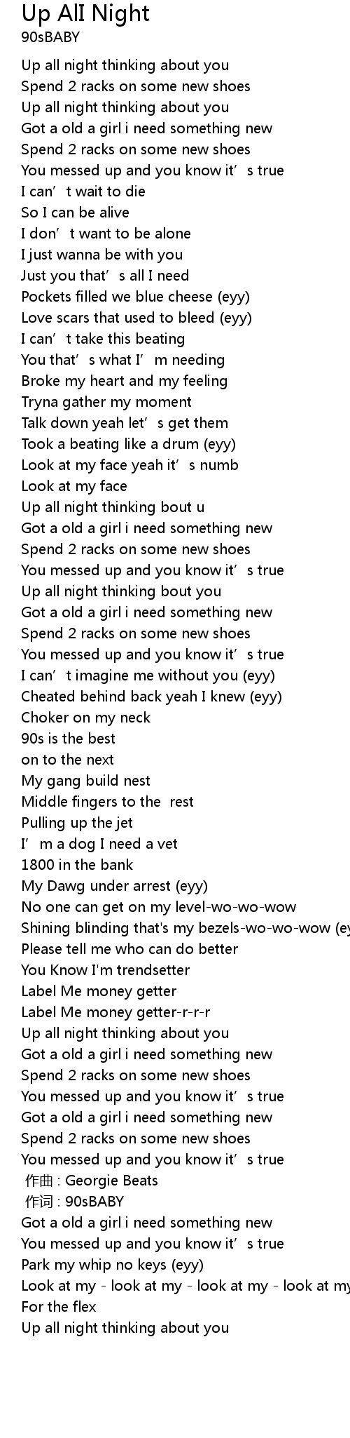 | [01:39] | Up all night thinking bout you |