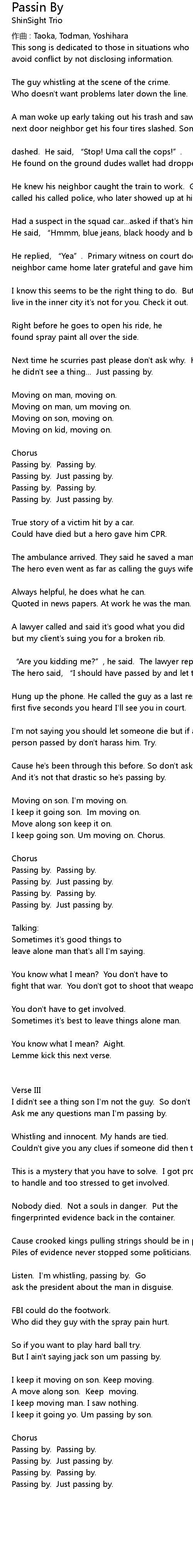 | Song | Passin By |