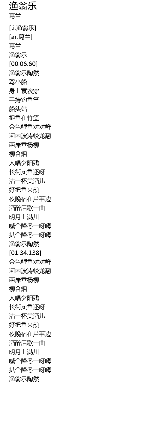 | [00:03.317] | 渔翁乐 |