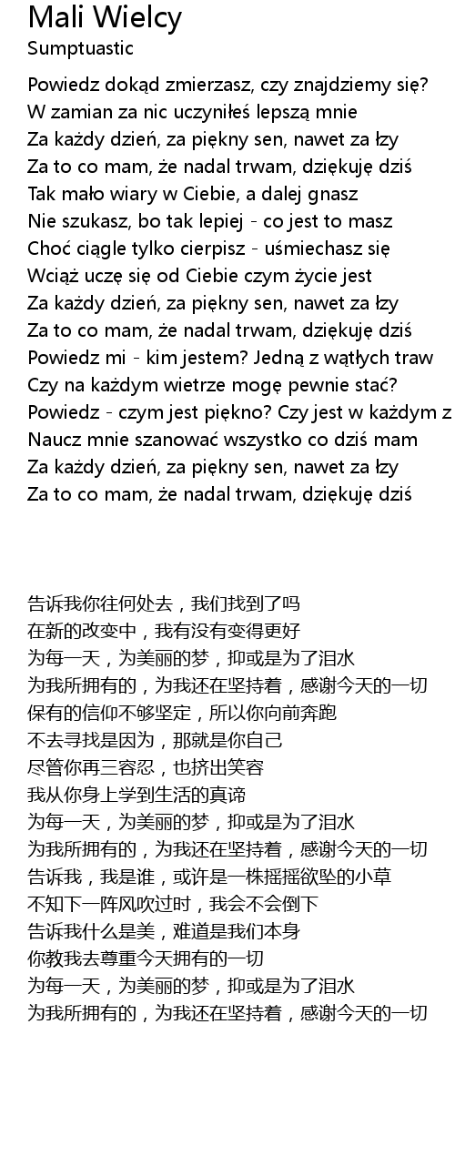 | [02:49.00] | Za to co mam, e nadal trwam, dzi kuj dzi |