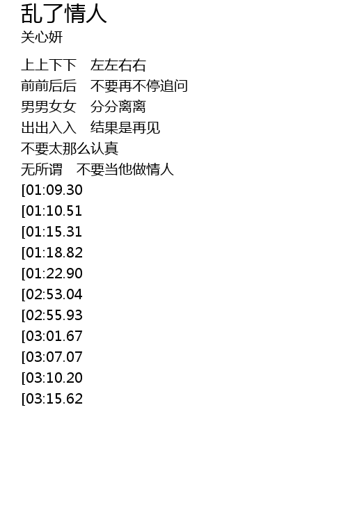 | [03:43.35][03:15.62][01:55.58] | 是我 乱了情人 |