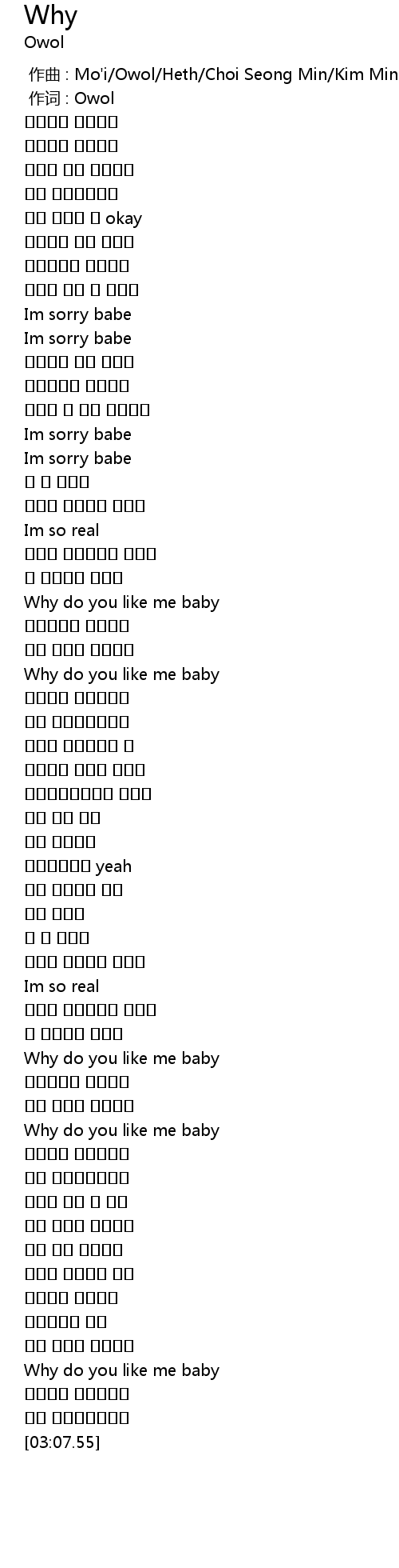| [00:00.000] | 作曲 : Mo'i/Owol/Heth/Choi Seong Min/Kim Min Seob |