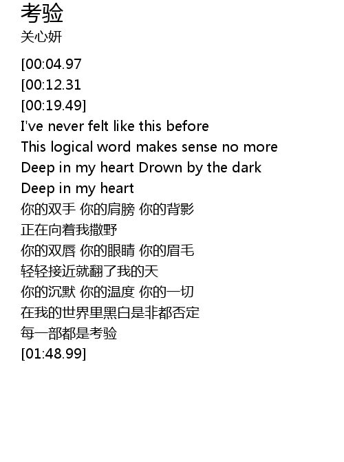| [01:42.98] | měi yī bù dōu shì kǎo yàn |
