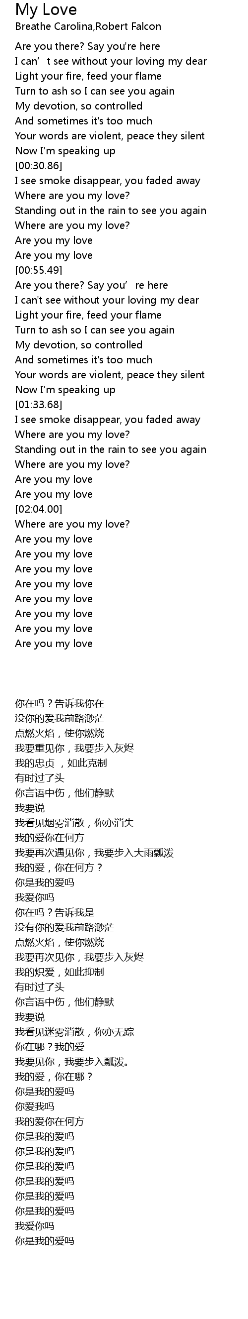 | [01:39.57] | Where are you my love? |
