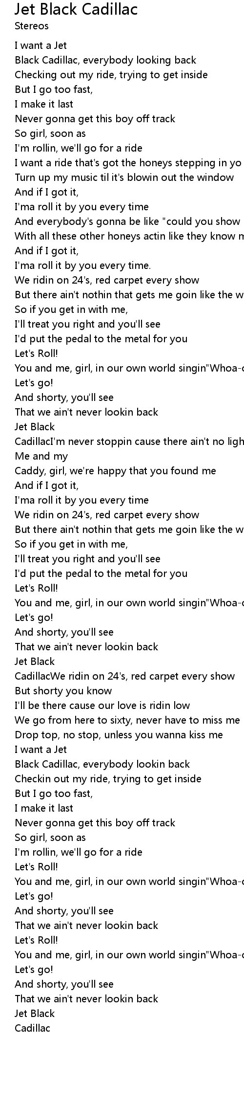 | CadillacI'm never stoppin cause there ain't no lights around me | |