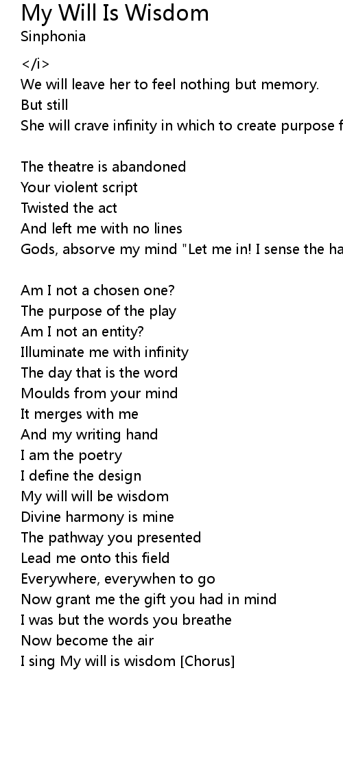 I sing My will is wisdom [Chorus] |