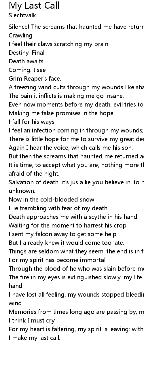 For my heart is faltering, my spirit is leaving; with my dying breath |