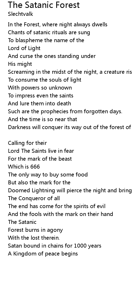 Darkness will conquer its way out of the forest of the night to spread its might |