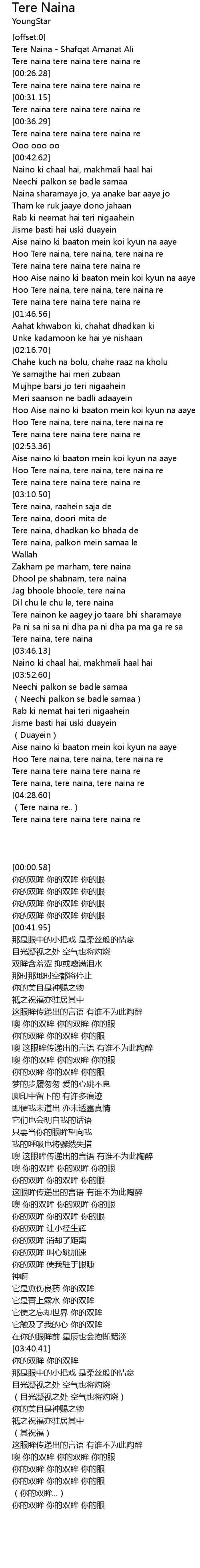 | [02:59.45] | Hoo Tere naina, tere naina, tere naina re |