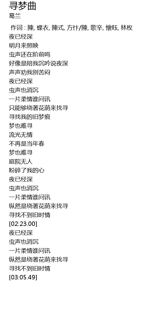| [01:41.28] | 梦也难寻 |