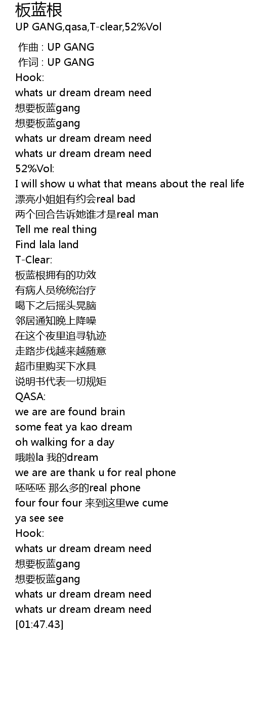 | [00:43.97] | bǎn lán gēn yōng yǒu de gōng xiào |