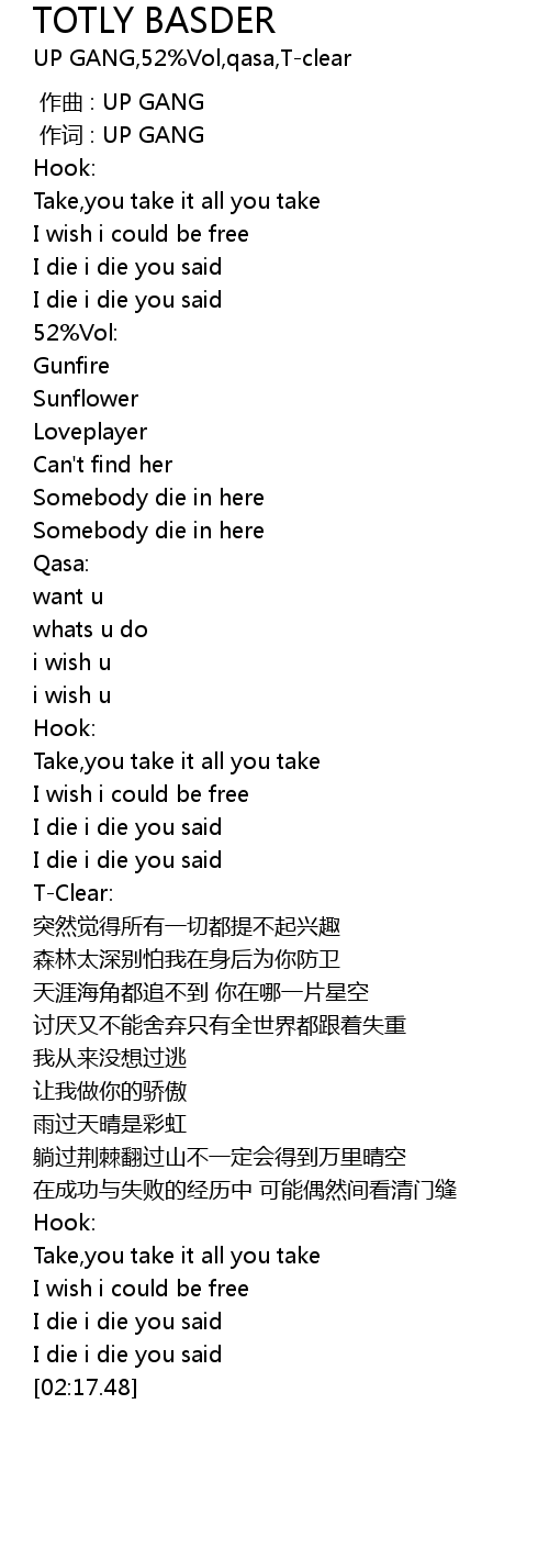 | [00:00.000] | zuo qu : UP GANG |