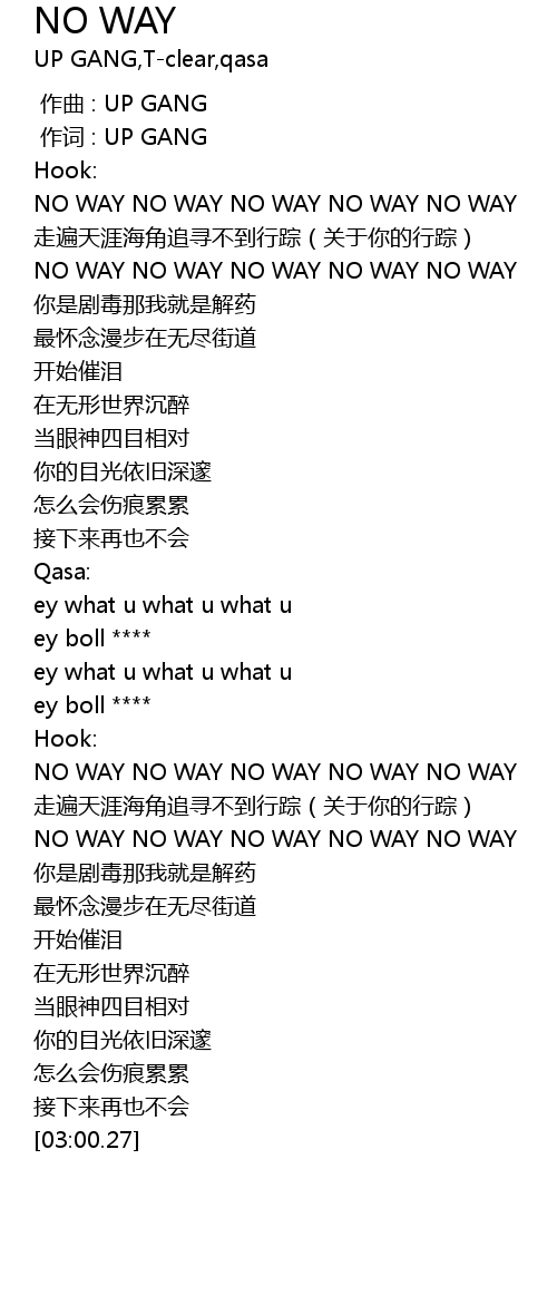 | [02:25.66] | NO WAY NO WAY NO WAY NO WAY NO WAY |