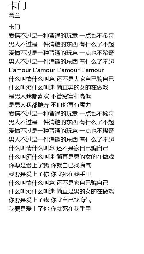 | [00:59.03] | L' amour L' amour L' amour L' amour |