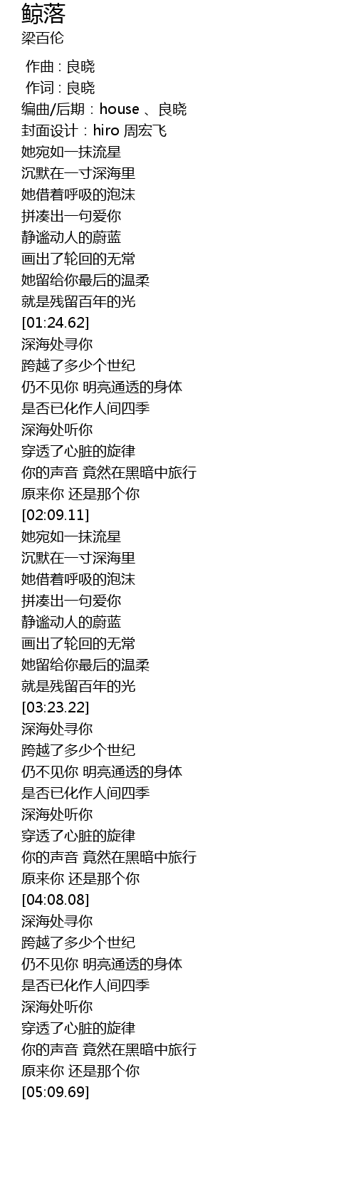 | [00:05.48] | 编曲/后期:house 、良晓 |