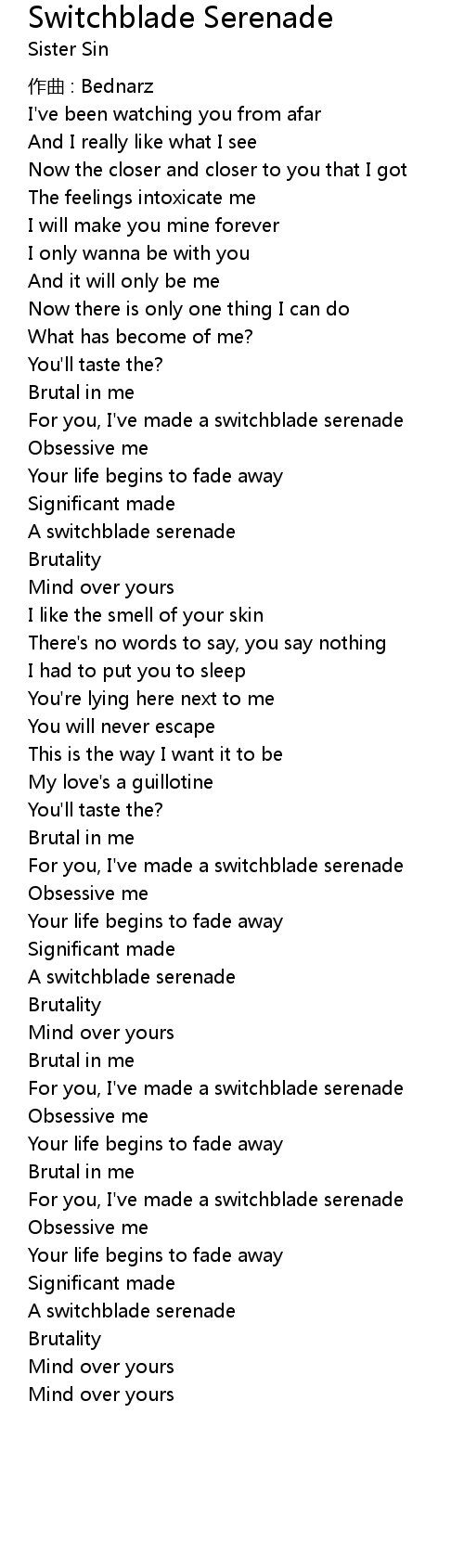 | For you, I' ve made a switchblade serenade | |