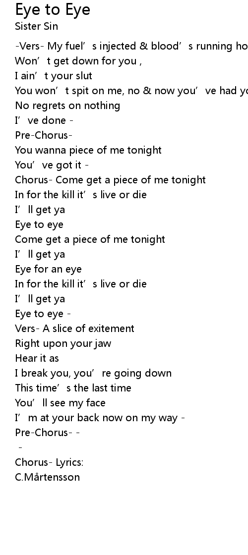 | Song | Eye to Eye |