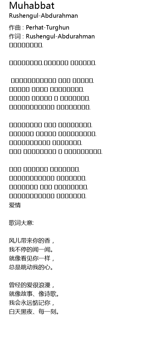 | 作词 : Rushengul-Abdurahman | |