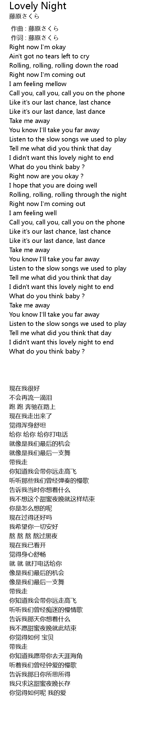 | [01:25.98] | Rolling, rolling, rolling through the night |