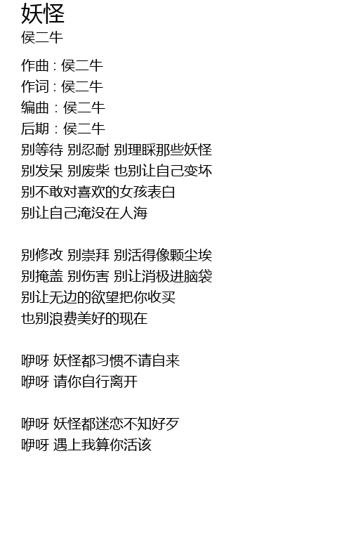 | 别等待 别忍耐 别理睬那些妖怪 | |