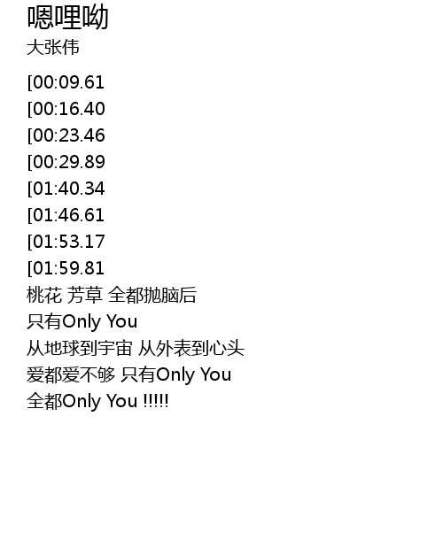| [02:25.37][01:46.61][00:42.10] | Only You de yi shi xiang zhe wo |
