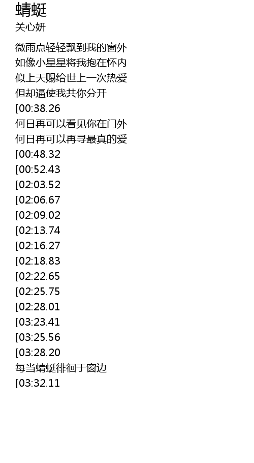 | [03:12.86][02:22.65][01:15.75] | měi dāng qīng tíng pái huái yú chuāng biān |