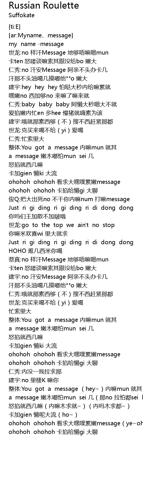 | [01:03.350] | zhěng tǐ: You got a message nèi ma mun jiù qí |