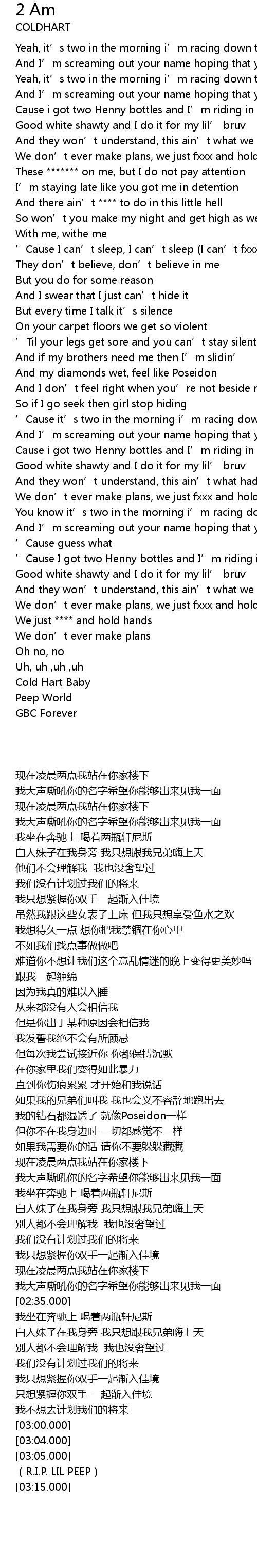 | [03:05.000] | Cold Hart Baby |