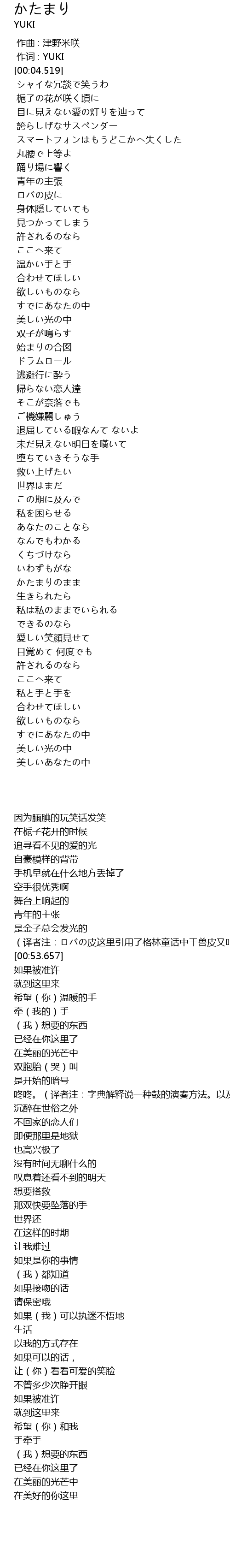 zuò cí : YUKI |
