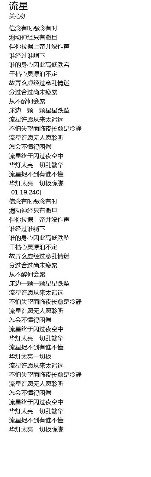 | [00:48.590] | 流星许愿无人愿聆听 |