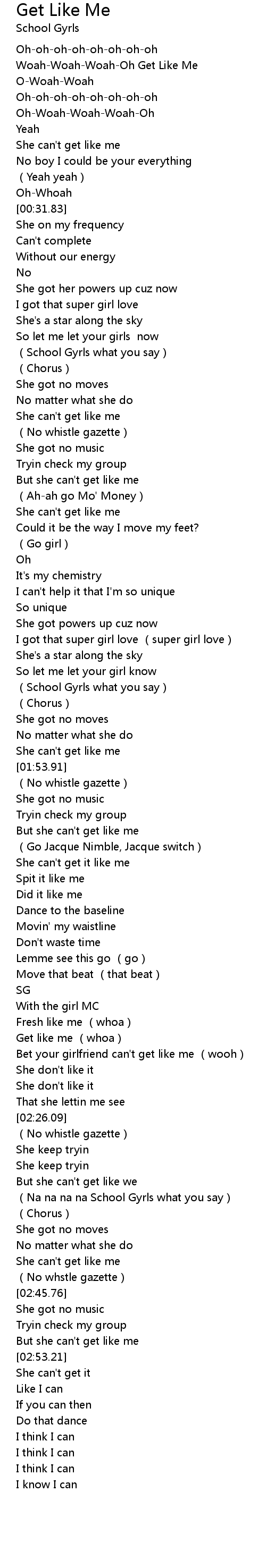 | [02:50.77] | But she can't get like me |