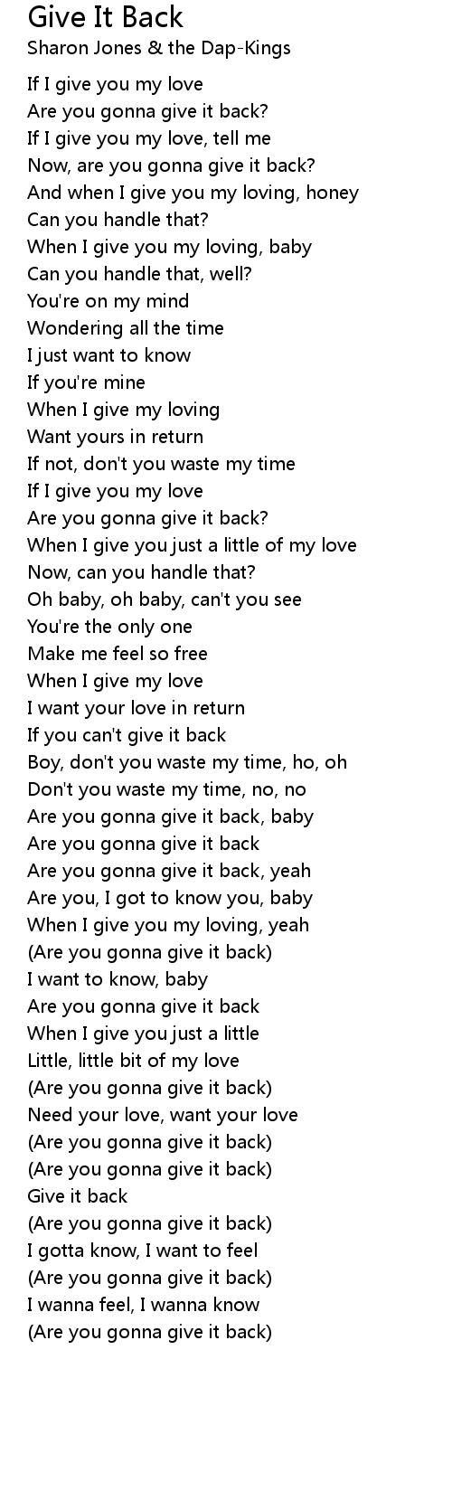 Are you gonna give it back |