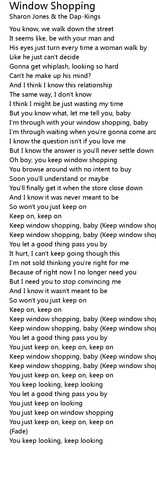 Keep window shopping, baby (Keep window shopping, baby) |