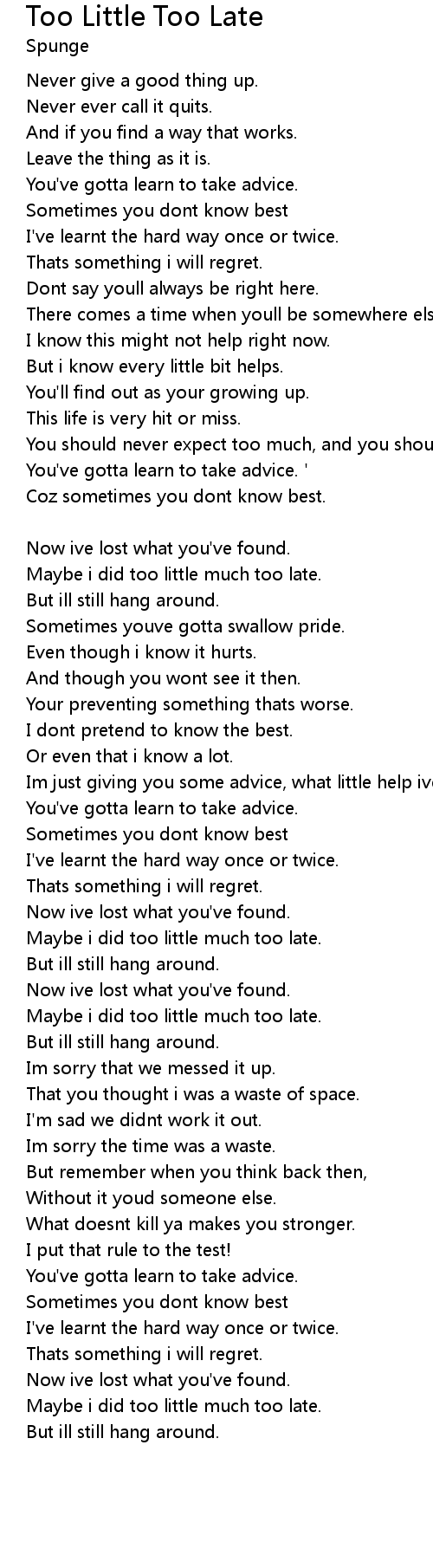 I've learnt the hard way once or twice, thats something i will regret [Chorus] |